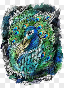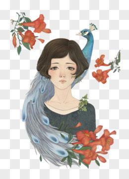插画国潮动物飞禽孔雀凤凰免抠元素