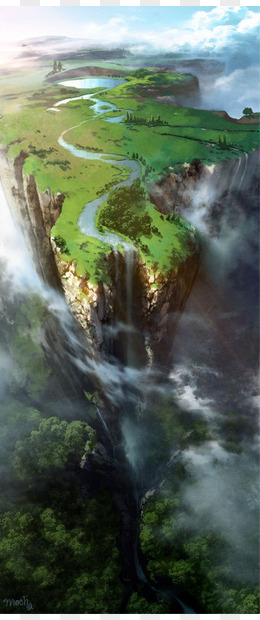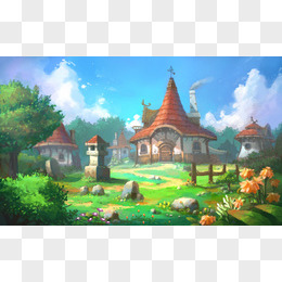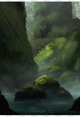 手绘绿色仙境插画