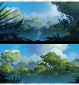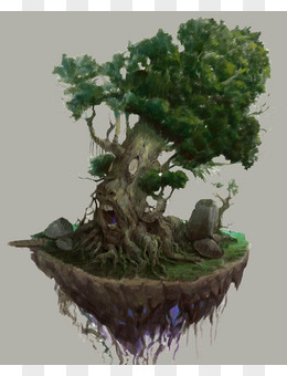 手绘绿色大树仙境插画