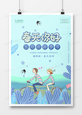 清新插画春天你好海报