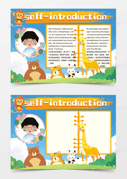 介绍可爱插画英语自我介绍小报动物手抄报