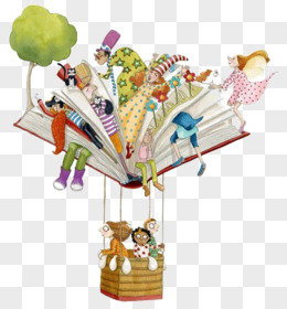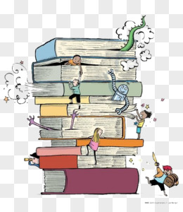 卡通手绘插画风小朋友坐在书本上读书微景观