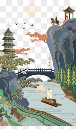 剪纸国风仙鹤松树粽子龙舟合成插画元素