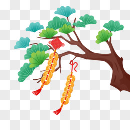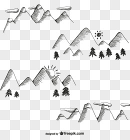 国潮插画冬天山脉中落满雪的松树风景免抠元素