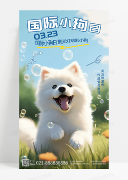 蓝色插画国际小狗日节日简约大气手机宣传海报