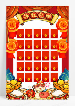 红色喜庆国潮风拆红包啦2025新年红包墙海报蛇年新年