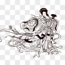 手绘中国风嫦娥奔月玉兔神话故事人物免抠元素