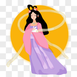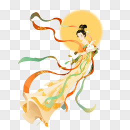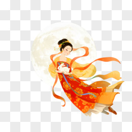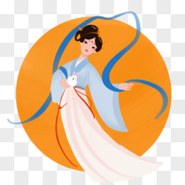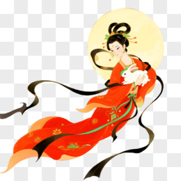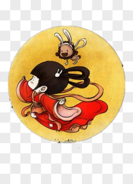 手绘矢量中秋节玉兔月亮楼阁插画场景元素