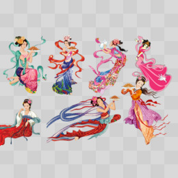 手绘中国风嫦娥奔月玉兔神话故事人物免抠元素