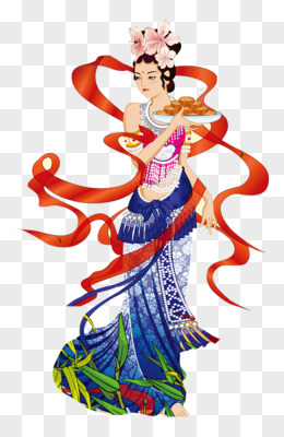 手绘中国风嫦娥奔月玉兔神话故事人物免抠元素