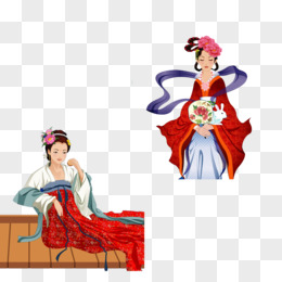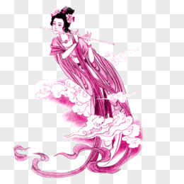 手绘中国风嫦娥奔月玉兔神话故事人物免抠元素