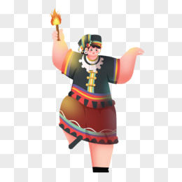 手绘少数民族男孩拿火把跳舞元素