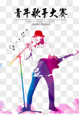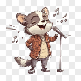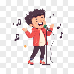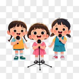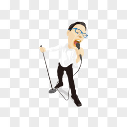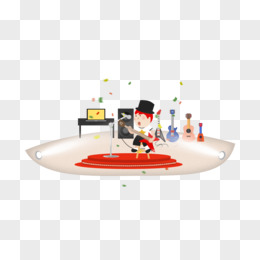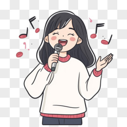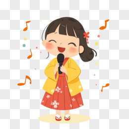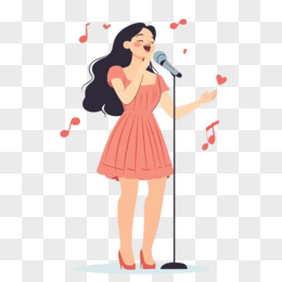 手绘卡通舞台上唱歌表演的女生免抠素材