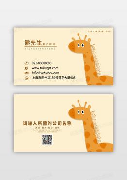 长颈鹿手绘风格插画名片模板