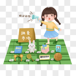 手绘女孩摆地摊场景元素