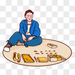 卡通手绘趴在地上观察虫子的小孩免抠元素