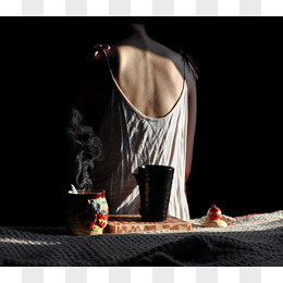 人物背景烟雾茶杯场景图