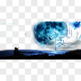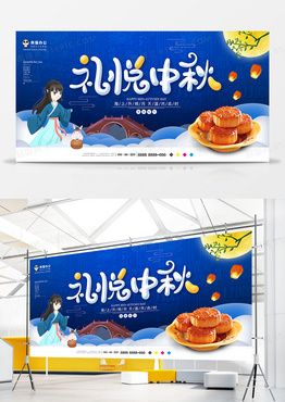 蓝色创意但愿人长久节日展板设计