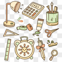 一组手绘卡通文具元素套图