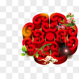 3D立体新年红色蛇缠绕传统塔楼免抠元素