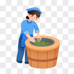 卡通矢量采茶炒茶的姑娘素材