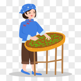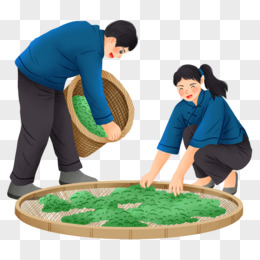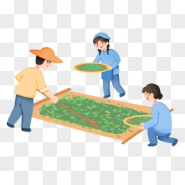 卡通手绘茶农晒茶素材