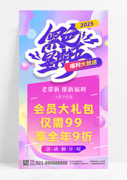 渐变流体黑色星期五2025福利大放送活动手机宣传海报
