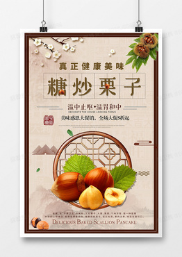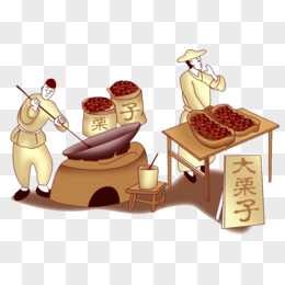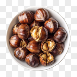手绘卡通秋天坚果干果一盘炒栗子免抠素材