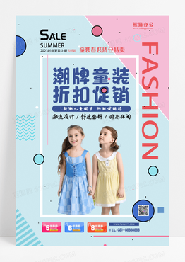 纯色背景潮牌童装折扣促销服装服饰童装促销海报设计