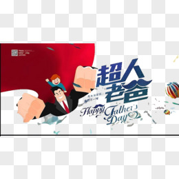 卡通手绘女儿骑在超人爸爸脖子上人物免抠素材