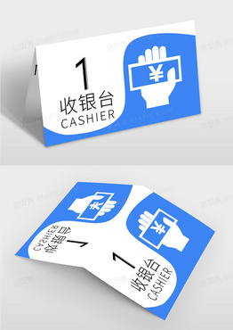 蓝色简约时尚的超市收银桌牌设计