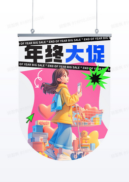 粉色创意时尚年终大促商超线下活动吊旗条幅
