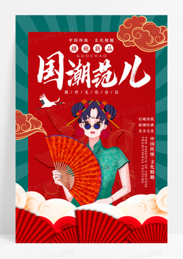 红色时尚国潮旗袍上新海报设计