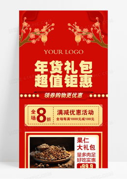 红色大气中国风年货礼包超值钜惠年货大礼包长图年货节