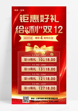 活动促销红色大气双十二房地产销售促销手机宣传海报