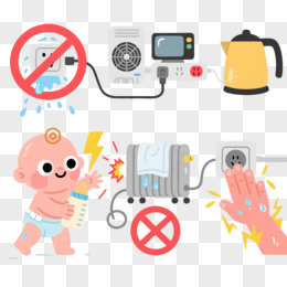 安全用电警示卡通手绘元素
