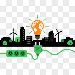 绿色插头城市剪影扁平插画元素