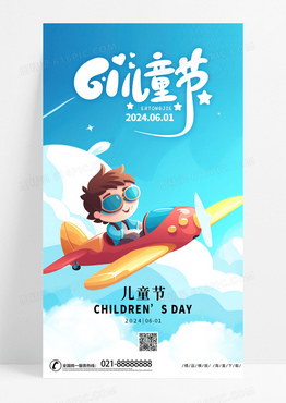 时尚卡通插头六一儿童节皮克斯风格AI生成61儿童节手机宣传海报