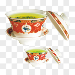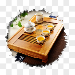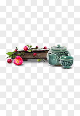 手绘国潮中式茶具瀑布创意微景观免抠元素