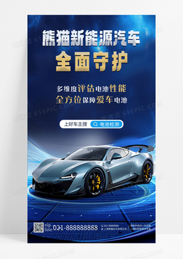 蓝色新能源汽车全面守护全方位保障爱车电池手机海报
