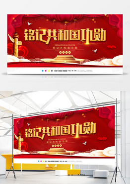 红色创意铭记共和国功勋展板设计