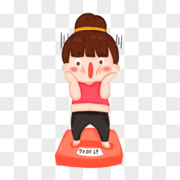手绘卡通可爱胖女孩称体重免抠元素