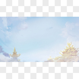 游戏场景城堡建筑蓝天白云高清摄影