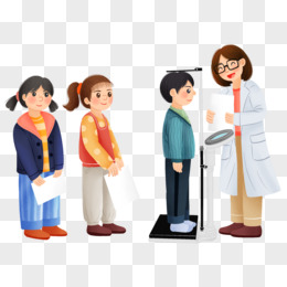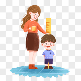 手绘卡通妈妈给孩子量身高场景免抠元素
