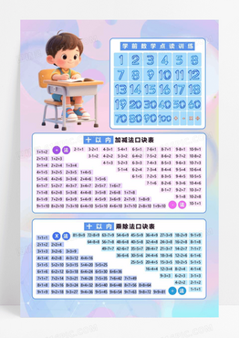 彩色卡通风学前教育乘除口诀表海报