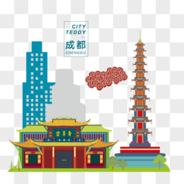 手绘成都地标建筑免抠素材