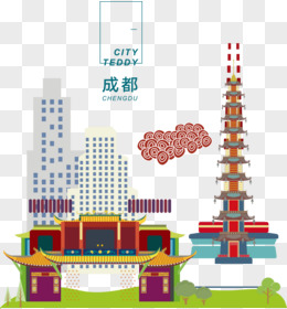 手绘国潮风城市建筑地标成都免抠素材