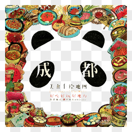 卡通手绘国潮风成都地标元素