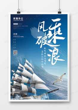 蓝色大气乘风破浪企业文化海报