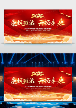 红色大气乘风破浪开拓未来2022企业年会宣传展板红色大气光线商务年会新年展板